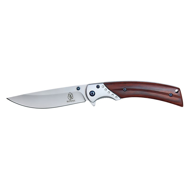 Introducing the "Crimson Sweep," a knife that combines practicality with an air of distinction. This knife features a 4.45" 3CR13 stainless steel blade, meticulously honed for an exceptional cutting experience. The handle, a graceful coupling of stainless steel and warm brown wood, provides a comfortable and secure grip. Fully extended, it measures 8.4", a size that feels substantial in your grip yet fits unobtrusively in your pocket.